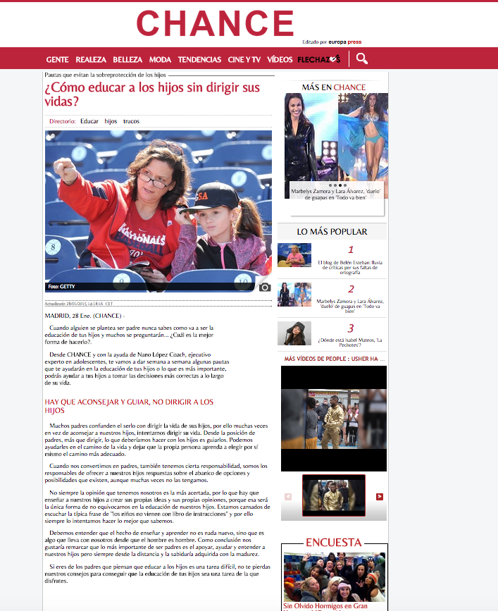 Cuando alguien se plantea ser padre nunca sabes como va a ser la educación de tus hijos y muchos se preguntarán… ¿Cuál es la mejor forma de hacerlo?. Desde CHANCE y con la ayuda de Nano López Coach, ejecutivo experto en adolescentes, te vamos a dar semana a semana algunas pautas que te ayudarán en la educación de tus hijos o lo que es más importante, podrás ayudar a tus hijos a tomar las decisiones más correctas a lo largo de su vida.
